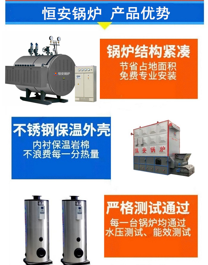 8、无噪音,无污染,热效率高,锅炉本体采用优质高效保温材料,散热损耗小,节能降耗。